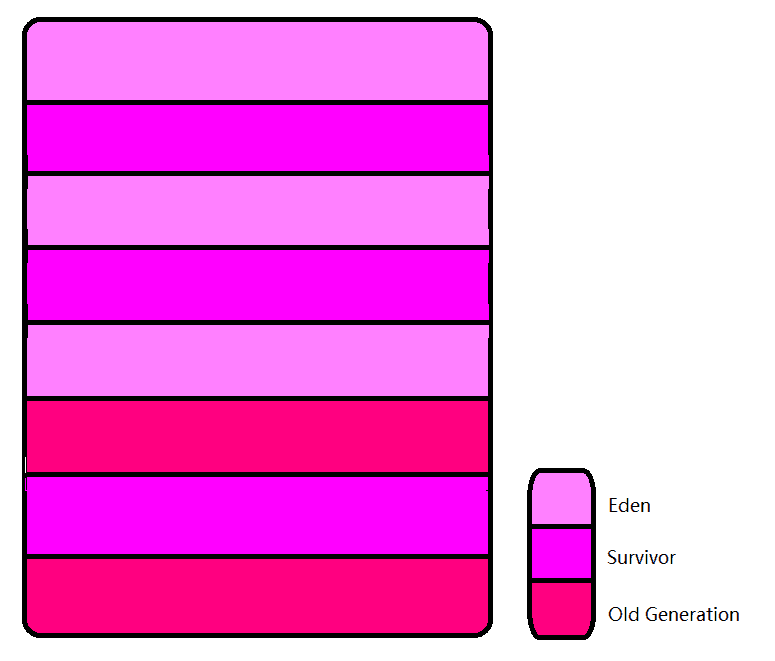 现代商用VM的新生代均采用复制算法,但由于新生代中的98%的对象都是生存周期极短的,因此并不需完全按照1∶1的比例划分新生代空间,而是将新生代划分为一块较大的Eden区和两块较小的Survivor区(HotSpot默认Eden和Survivor的大小比例为8∶1), 每次只用Eden和其中一块Survivor。