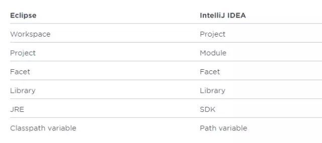 由下图可见:两者最大的转变就在于工作空间概念的转变,并且在IDEA当中,Project和 Module是作为两个不同的概念,对项目结构是具有重大意义的,这也恰恰是许多IDEA初学者觉得困扰的地方。