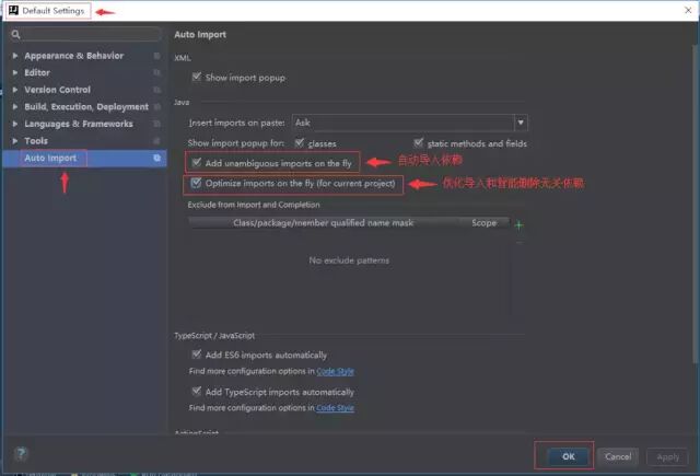 具体步骤:顶部工具栏 File ->Other Settings -> Default Settings -> Auto Import