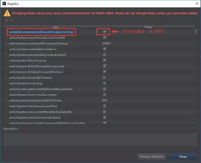 具体步骤:敲击 Ctrl + Shift + Alt + / 然后双击Shift搜索进入Registry ,找到compiler.automake.allow.when.app.running ,然后勾选上。