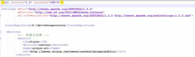 这里提醒一下,Apache Maven 本地仓库的地址是自动生成的,通常在C盘的用户目录里,所以在实际开发中推荐大家指定本地仓库的地址,避免因重装系统或被第三方安全工具清理而丢失数据。Maven的配置很简单,删掉注释后一目了然。(注:Maven不熟悉的,可以在我们Java知音公众号回复"maven视频",获取maven视频教程)如图: