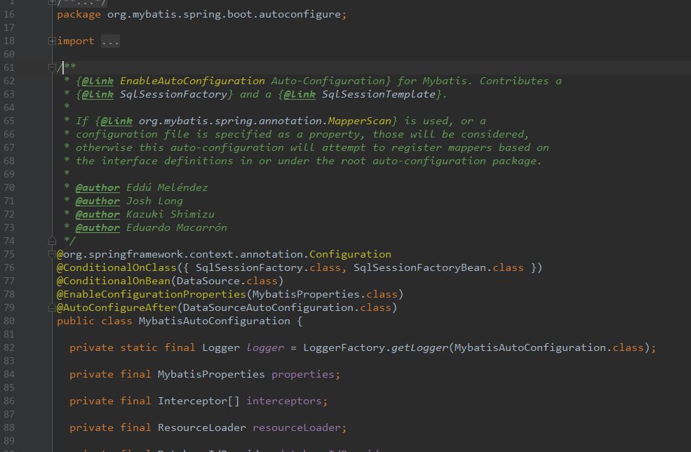 进入org.mybatis.spring.boot.autoconfigure.MybatisAutoConfiguration中,主要看一下类头