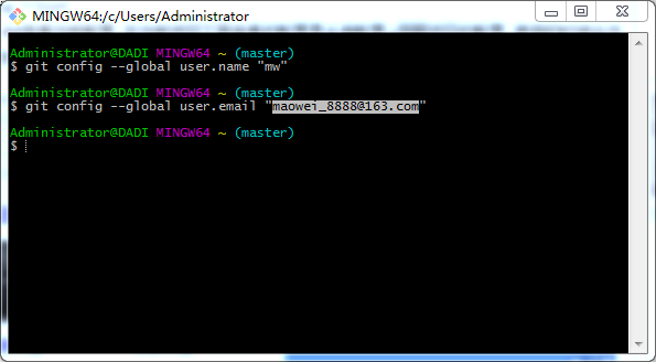 git config --global user.email "你的邮箱"