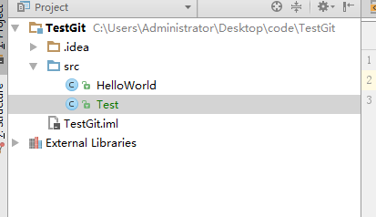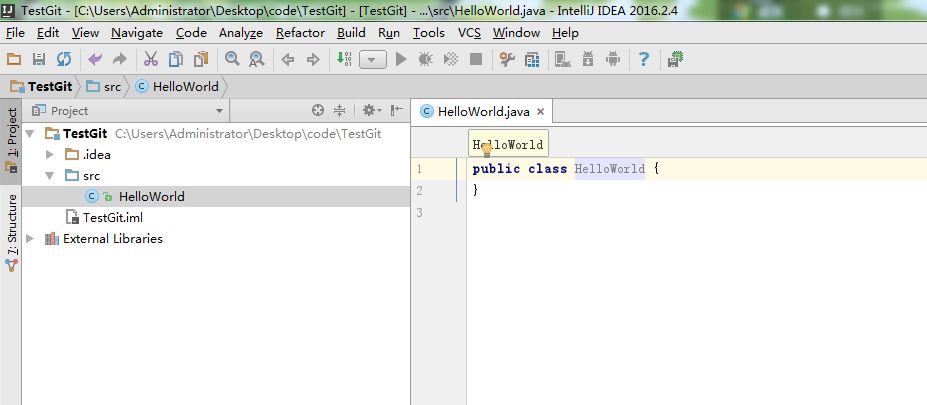 2.新建一个项目: TestGit, src下创建一个HelloWorld.java文件,