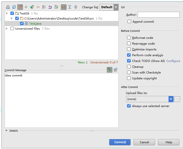 新建一个Test文件, 然后提交到版本库, 步骤如下: