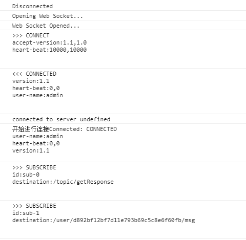 //4通过stompClient.subscribe()订阅服务器的目标是'/topic/getResponse'发送过来的地址,与@SendTo中的地址对应。