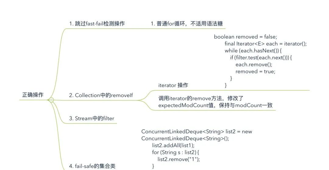 在foreach中操作增删,因为因为 modCount 会被修改,与第一步保存的数组修改次数不一致,抛出异常 ConcurrentModificationException