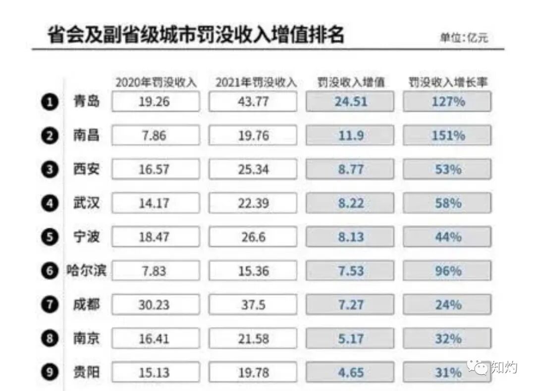 与2020年相比,青岛市罚没收入增长了24.51亿,增幅为127%。