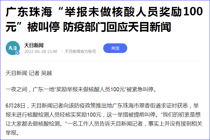但最近一段时间,又看到一些地方出台了类似核酸检测举报奖励的通告。