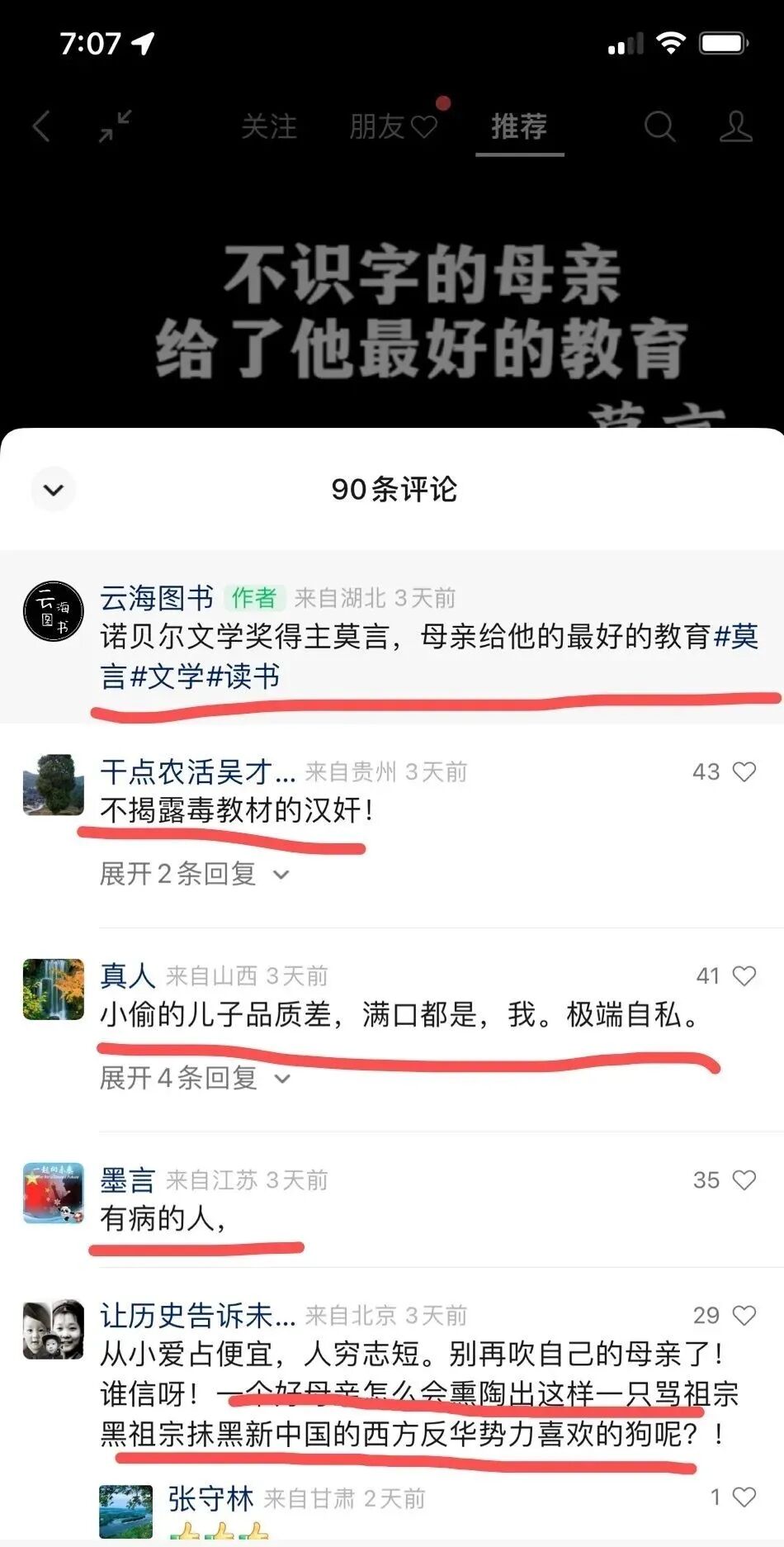 从莫言拿诺奖到现在已经十年,十年里对他进行的攻击从未停止。有人翻出莫言当时领奖的照片,表示气质宛如“事业达到顶峰的酒店领班”。下面的评论则更为露骨:![]()