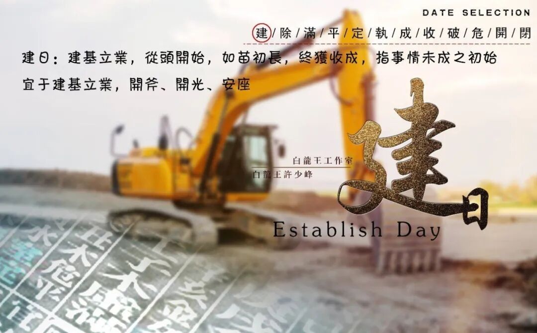 :健旺之气,建基立业,指事情未成之初始。从头开始,如苗初长,终获收成。建日为该月吉祥的日子。