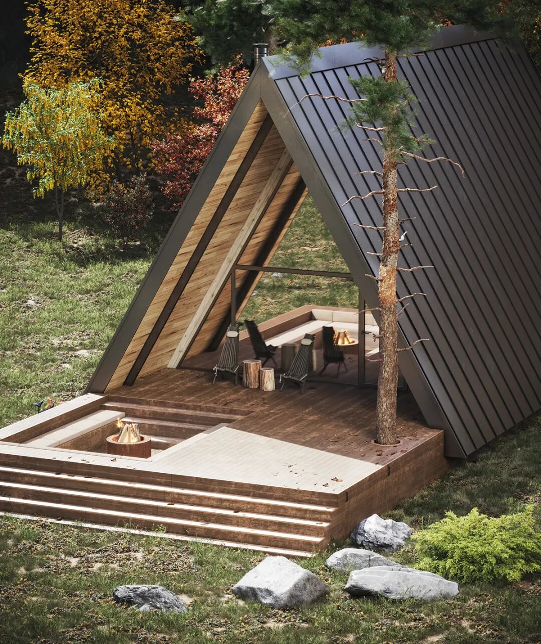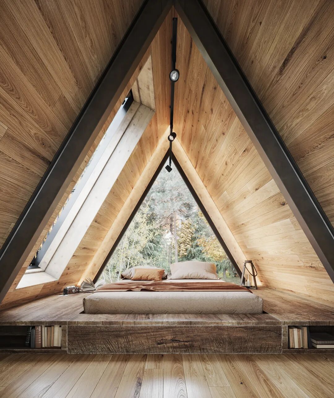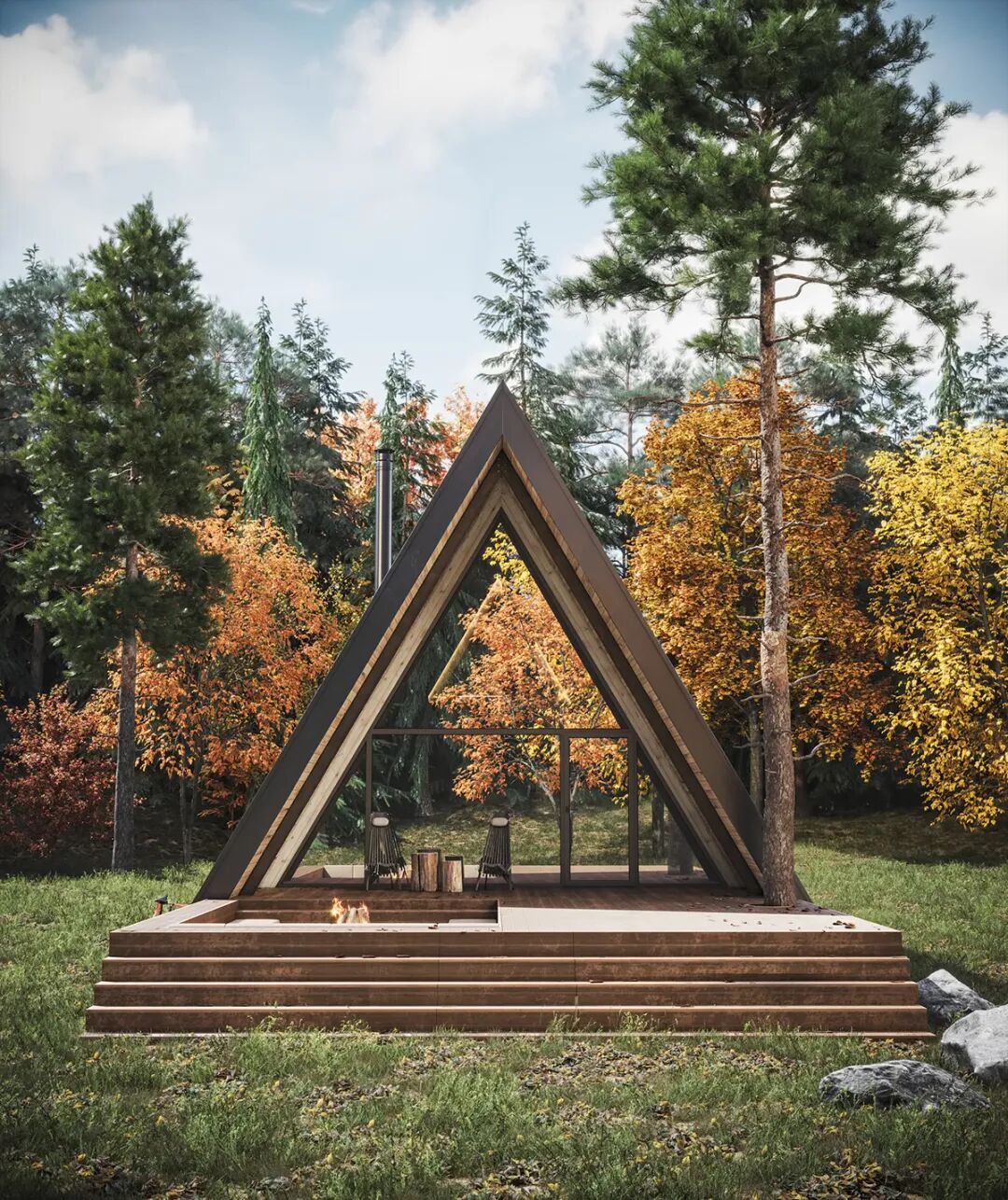 该项目位于乌克兰的喀尔巴阡山脉,是一座私人住宅,为热衷于亲近自然的客户所做。灵感来源于雨后的森林。项目占地80㎡,大量的木材营造出舒适的感觉,房屋带有松木的味道。屋内有全套厨房用具和生活必要的功能区。整个房子只有一间卧室,可以容纳3-4人的露营和聚会。为了让建筑更好的与自然融合,设计师选择了三角形的结构,以此来模仿搭建在森林中的帐篷。大面积的窗户也使室内的森林景观透入室内,使居者真正感受到与自然的亲近。