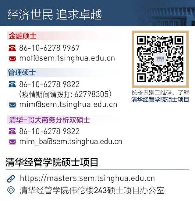功能介绍 该平台致力于清华经管学院应用型硕士项目的介绍,目前主要包括金融硕士项目、管理硕士项目、会计硕士项目、清华大学-哥伦比亚大学商务分析双硕士学位项目等。