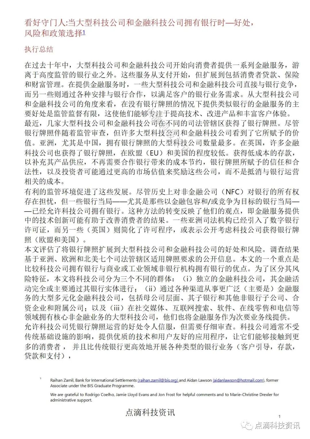 BIS:大型科技公司和金融科技公司控制银行带来的好处和风险及其政策选择