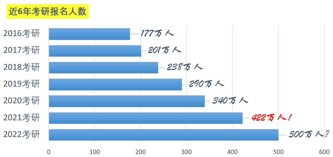 注:2021年考研报名人数422万为网传,非教育部官方数据。