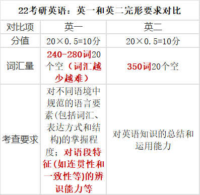 七、英一和英二完型要求对比