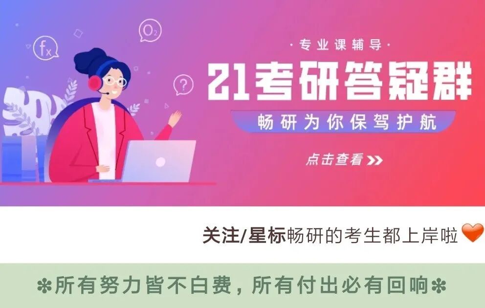 21的小伙伴可以加一下各高校的21考研群,畅研学长学姐想你所想,为考研学子用心打造各高校专业课全套辅导资料,同时还可享受免费的全年指导答疑服务,赶快扫下面二维码了解更多贴心服务吧。