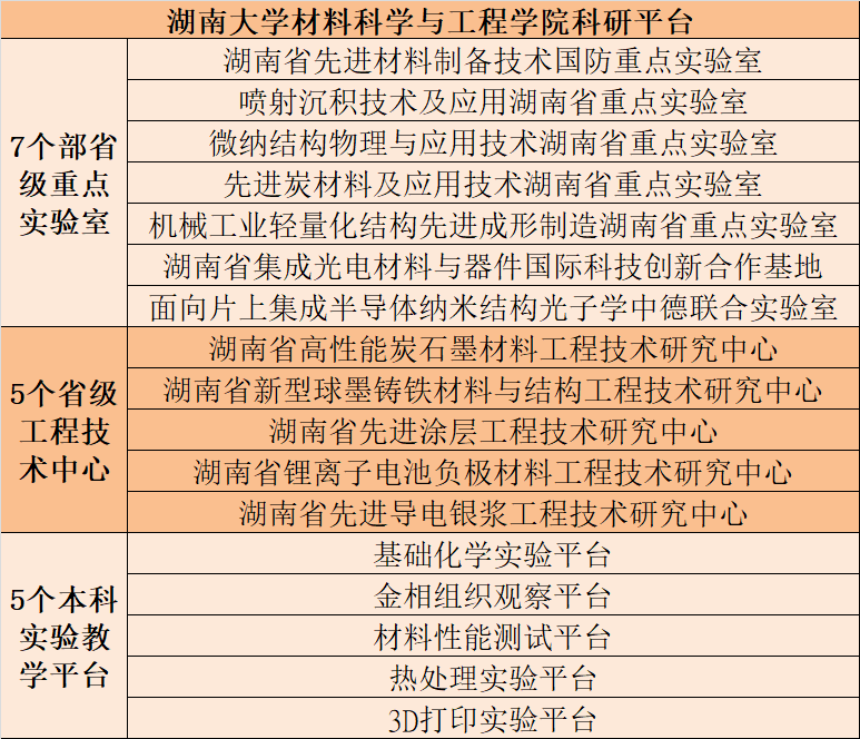 湖南大学材料学科起源于1903年开办的湖南高等实业学堂的矿科,1943 年开始招收研究生,1958年设立硅酸盐、铸造、金属防腐、金属物理专业。2000年成立材料科学与工程学院。2011年材料科学与工程专业被评为国家特色专业。学院设有7个部省级重点实验室及5个工程技术中心;2008 年起本学科ESI 排名进入全球前1%,2020年进入前0.15%,排名138位。学院师资力量雄厚,具备博士学位教师比例达99%,海外引进教师67%。2018年,学院获批首批“全国高校黄大年式教师团队”和教育部首批“三全育人”综合改革试点学院(全国50个)。
