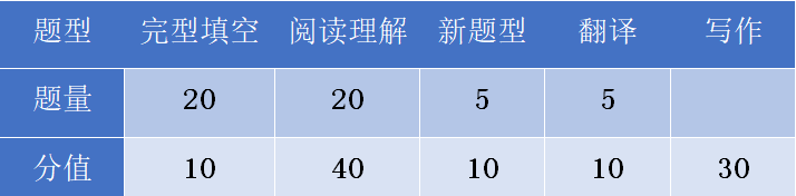 考研英语题型与分值分配: