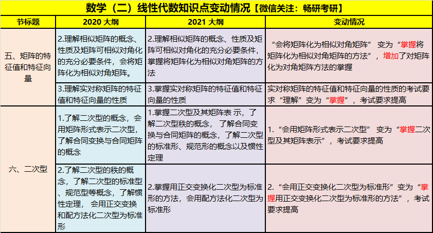 数学(二)考试要求变动情况