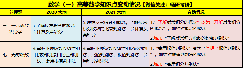 数学一知识点变动比较少,只有高数部分的两节知识点有所变动,线代和概率论没有变化。