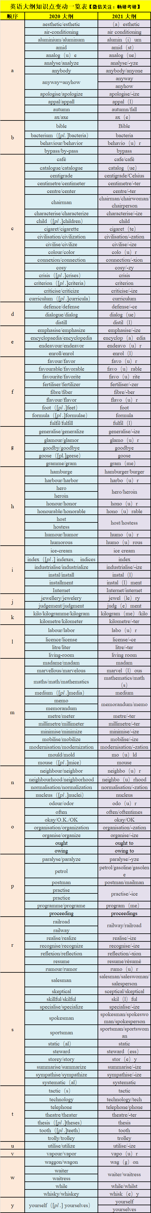 2021 考研英语大纲变动主要体现在两个方面。
