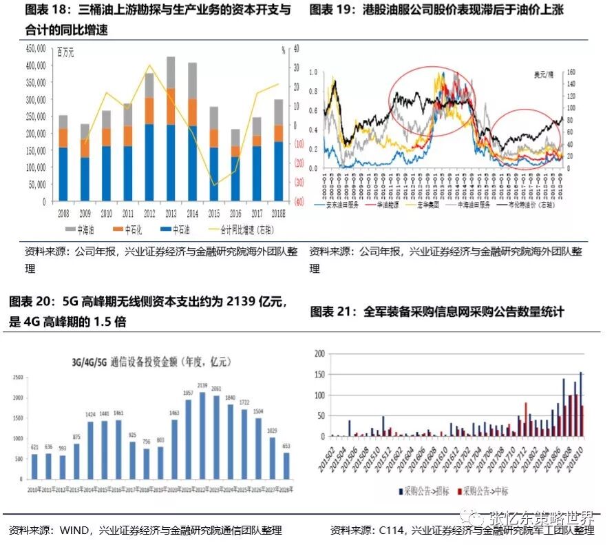3.2、中期聚焦政策红利找“阿尔法”,精选A股和港股机会。思路一:聚焦于刺激内需、减税和放松管制等政策红利,逢低增持5G、油气油服、新能源、军工等。思路二:聚焦对冲经济下行压力的政策调整,看好低估值的建筑股,博弈房地产政策微调。思路三:耐心等待金融、消费等传统核心资产利空出尽。