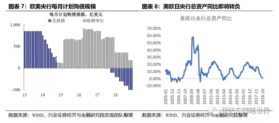 海外流动性紧缩风险仍将继续,美国12月加息是大概率,欧洲央行年底开始缩表,美联储缩表进程比加息进程更确定。1)美欧日三大央行的总资产同比2019年极有可能转负,这意味着全球流动性的继续收紧。2)虽然鲍威尔和美联储官员言论转向偏好鸽派,让投资者憧憬美国加息节奏可能从2019年3次降至1次,但是2019年上半年美国经济有下行风险,届时加息和不加息都是坏消息。