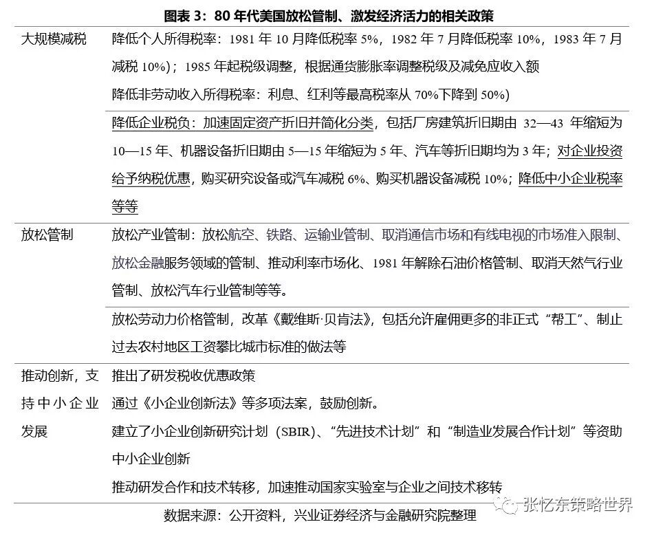 中长期来看,走出大国博弈困境的重点不在外,而在内,新一轮改革开放式中国走出困境、摆脱修昔底德陷阱的杀手锏。中国推进市场化改革开放才是解决问题的金钥匙。如我们在《一溪流水泛轻舟》中所论述:此轮政策环境改善的核心在于更重视市场化的力量,放松管制、激发市场活力,不是“大水漫灌”而是“一溪流水滋润万物”。中期,放松管制、引导市场活力释放的地方,就是有机会的地方,比如,2019年科技创新型企业、民营企业、中小微企业将迎来流动性环境的显著改善;财政政策突出减税降费。长期,可以参考80年代里根新政,中国重塑市场化增长方式有助于从高增长转向高质量,推动中国经济成功转型,资本市场重塑新生。
