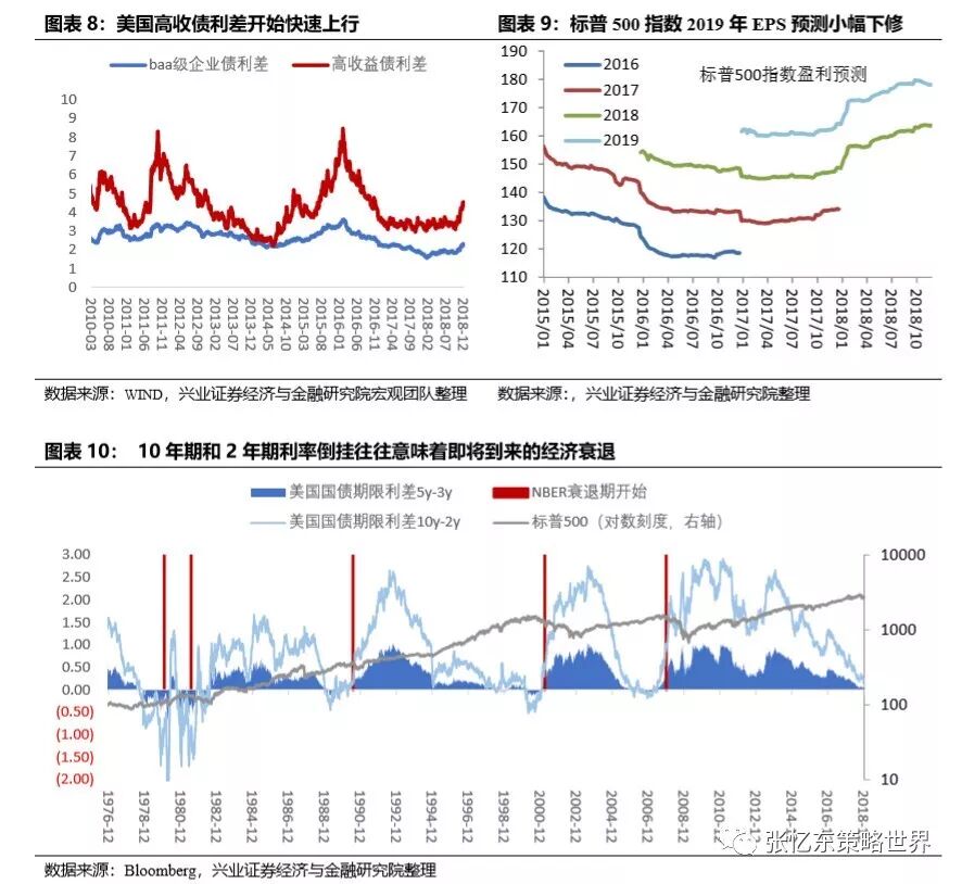 第二,2019年上半年美国经济有下行风险,届时加息和不加息都是坏消息。国债收益率曲线走平、企业债利差特别是高收益债利差开始上行,都表明经济下行风险正在加大。美股走熊、11月非农就业数据不佳、鲍威尔和美联储官员言论转向偏好鸽派,让投资者憧憬美国加息节奏可能从2019年3次降至1次。需要关注下周联储12月议息会议对2019年的加息节奏的展望,将会影响短期风险偏好的起伏。但是,随着美国经济下行,届时加息和不加息都是坏消息