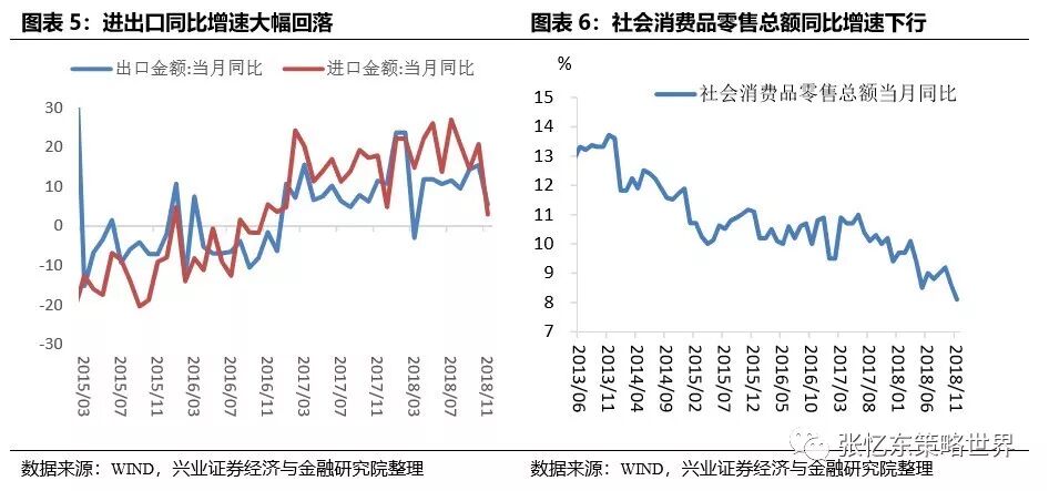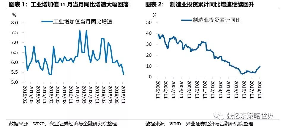 1.1、中国经济下行压力继续释放。11月经济数据放缓较为明显,工业增加值、进出口、消费同比增速大幅回落,基建投资止跌,制造业投资、房地产投资未来有下行压力,社融余额同比增速继续下行。