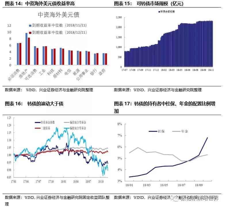 其次,趁波动而战略性布局境内可转债。首先,从转债的投资逻辑来看,利率仍有下行空间,考虑政策对冲,信用风险压力有所缓解,资本市场的风险偏好有望逐步回升,股票的估值也处于底部区域。第二,更长期的机会来自市场的大扩容,外资、银行理财、养老等配置型资金的流入值得期待。外资的长钱可以通过参与优质公司发行的可转债,以较低的风险来配置中国的优质资产。银行的理财子公司发行公募理财明年开始正式运营,由于更擅长债权投资,也可能更愿意先通过投资可转债市场来提高收益率。社保机构的变化,持有转债的占比从去年年底的3.05%上升到10月的6.81%,已经超过券商自营持有的比例。