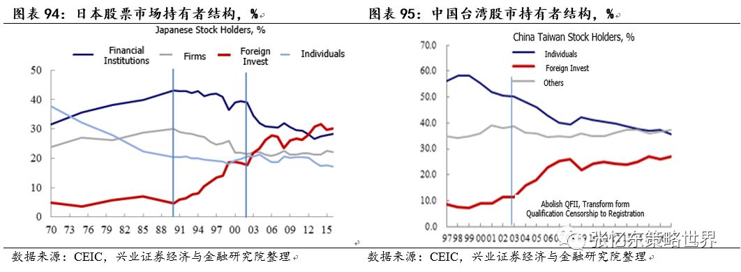 资本市场开放之后,外国投资者在日、韩和中国台湾地区最终市值占比20%-30%。而目前外资仅占中国A股的3.17%。