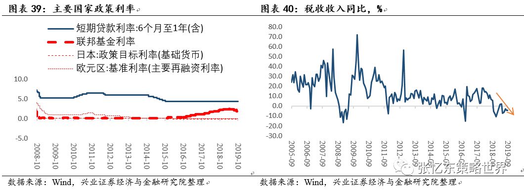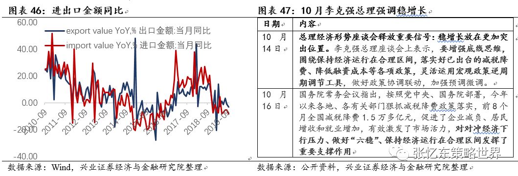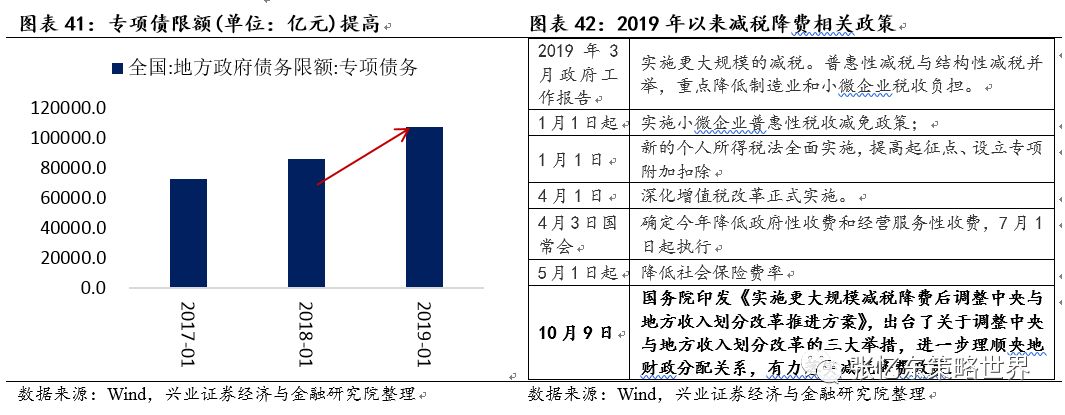 另一方面,积极的财政政策更加积极,积极释放市场化的政策红利,积极增强地方政府的财力和动力。2019年大规模的减税降费、政策性救助基金等,降低了企业的负担,财政支撑起到激发市场活力的作用。最新月税收收入同比继续负增长,延续2018年中的下行趋势。同时,积极提高地方专项债的额度;调整中央与地方收入划分改革,对进一步理顺央地财政分配关系起到积极作用。