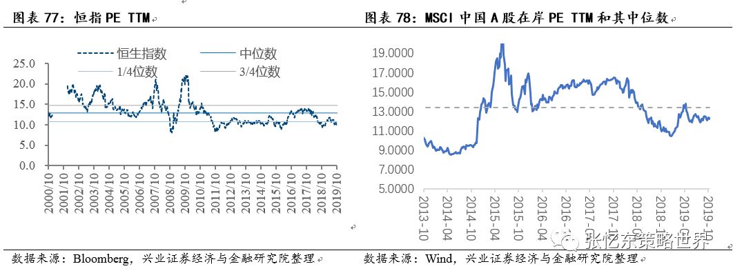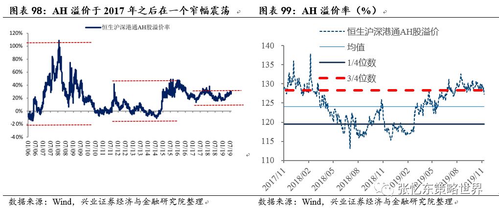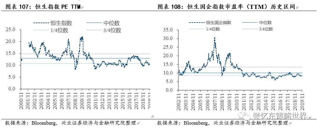 另一方面,内地公司是被殃及池鱼,透支了恐慌情绪,A-H溢价指数在17年后震荡区间的高位,意味着H股相比已经处于战略性底部区域的A股还要打折30%左右。2015年之后,随着沪深港通的双向扩容,内资对港股的影响力增加,AH溢价率波动区间进一步收窄,在15%-30%的区间内窄幅波动。
