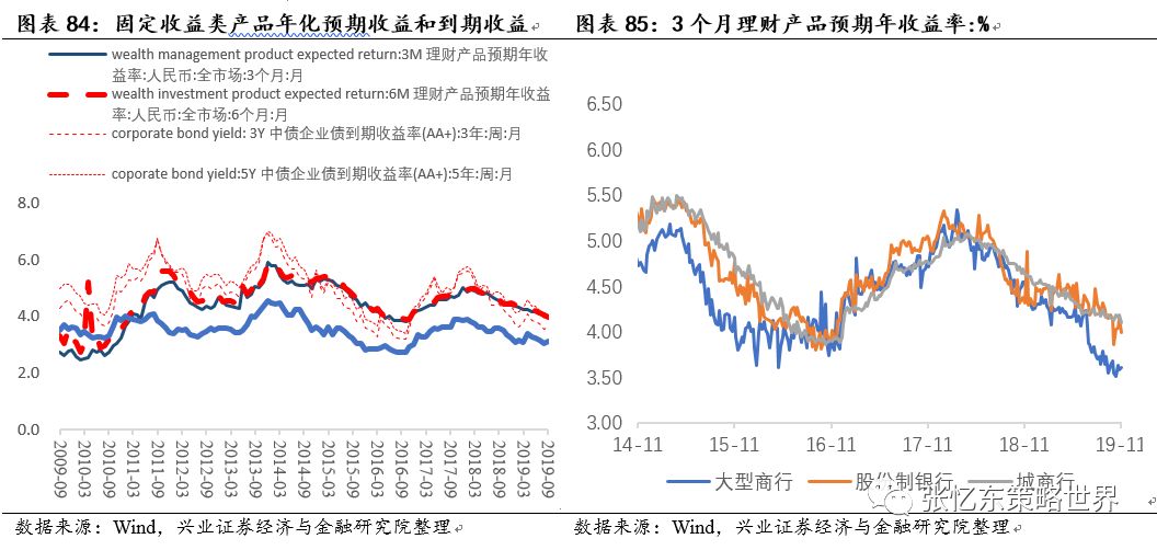 另一方面,伴随金融资管新规的逐步落实,理财产品预期收益率和基础固定资产收益率倒挂,银行理财资金有望流向股市寻求高收益。近期理财产品收益出现大幅下行,以大型商行为例,截至11月03日,其3个月理财收益大幅下降至3.61%左右。