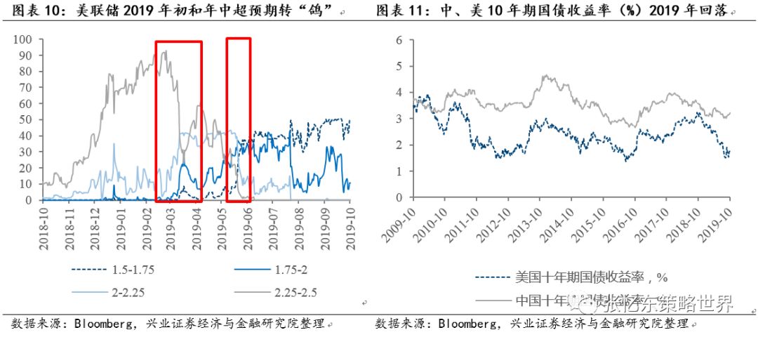但是,2020年美联储货币政策较难像2019年超预期宽松,美国无风险收益率不太可能像2019年那般大幅下降。根据10月份FOMC会议,美联储去掉了“采取恰当行动”的表述,更改为“评估未来合适路径”,这显示出美联储准备维持利率不变一段时间,以评估货币政策对经济的影响。同时,美联储正在密切地关注市场的流动性,这使得2020年美国经济大概率不会陷入流动性危机。