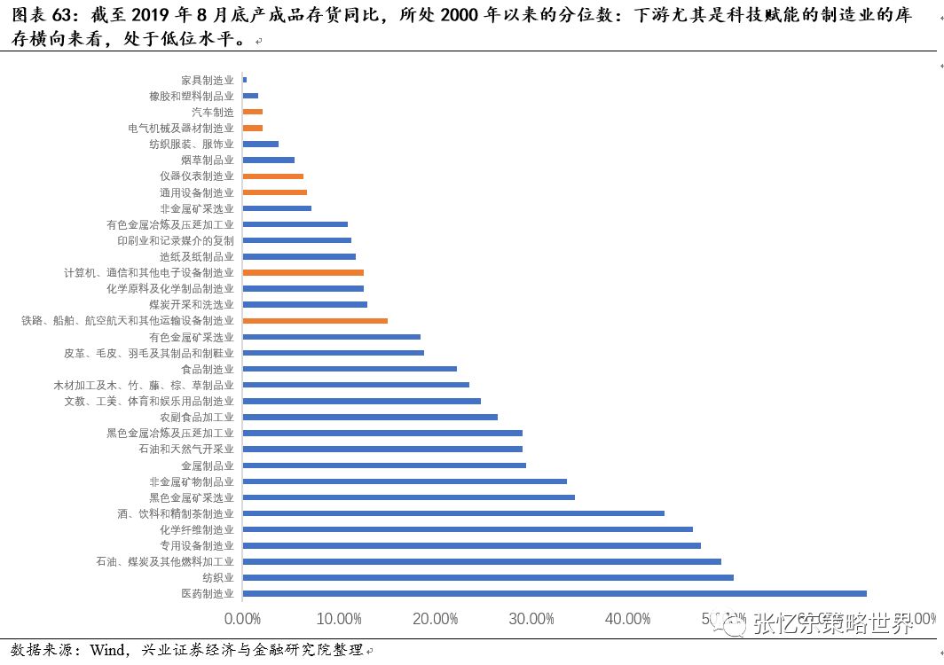 第二、库存周期可能已见底,但未来数月“类滞涨”阴影下,整体回升不会显著,亮点在于结构分化。库存本身是名义额的概念,即使数量不变,价格反升亦会提升名义额上的变动,若仅考虑基数效应,未来PPI回升也是大概率。另外,在低位库存下,供给相对需求较少也会带来价格抬升压力,所以有望在数值上看到库存的回升。最后,政策利多的刺激下,中下游制造业龙头有望率先复苏。