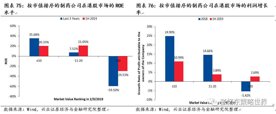 各行业、各领域核心资产逆势崛起,净利润增速的稳定性差异也出现明显分化。以沪深300 非金融为代表的龙头公司2019年Q2单季度净利润增速同比为5.8%,高于2019 Q1的2.4%;二线龙头中证500 非金融在2019 Q2单季度净利润同比增速负增长8%。而未纳入以上两指数的非金融类公司净利润负增长23%。