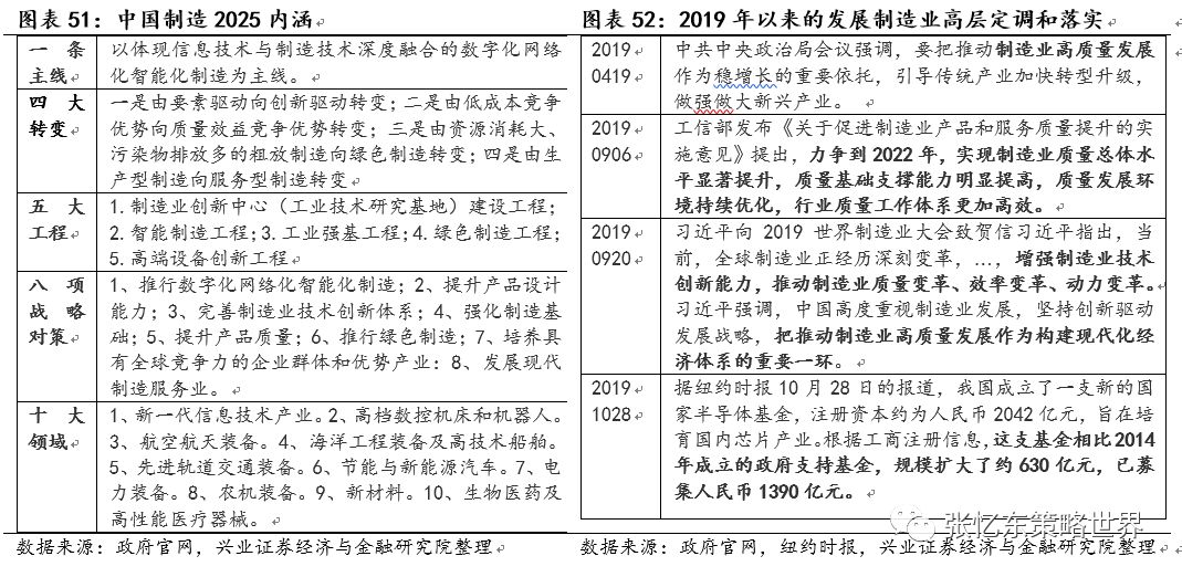 首先,制造业投资是兼顾短期稳增长和中长期战略目标的最佳选项。相比较而言,当前进出口受限于海外,投资端基建受限于债务率、房地产受限于社会压力,消费端刺激效果不明显,而制造业投资的规模在三大固定资产投资里居首,此前“中国制造2025”的战略目标其实是中国制造业的升级和中国经济效率提升。因此,扶持具有科技含量的制造业则是明智之举。