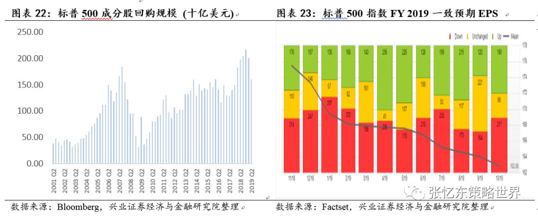 1.3.3、美国经济2020年有压力但衰退风险不大,美股盈利的一致预期不高但仍需提防buyback下滑超预期