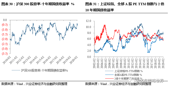 截至2月27日,上证综指PE TTM倒数所显示的潜在投资回报率,远超过与2倍10年期国债收益率,全部A股PE TTM倒数与2倍10年期国债收益率接近。