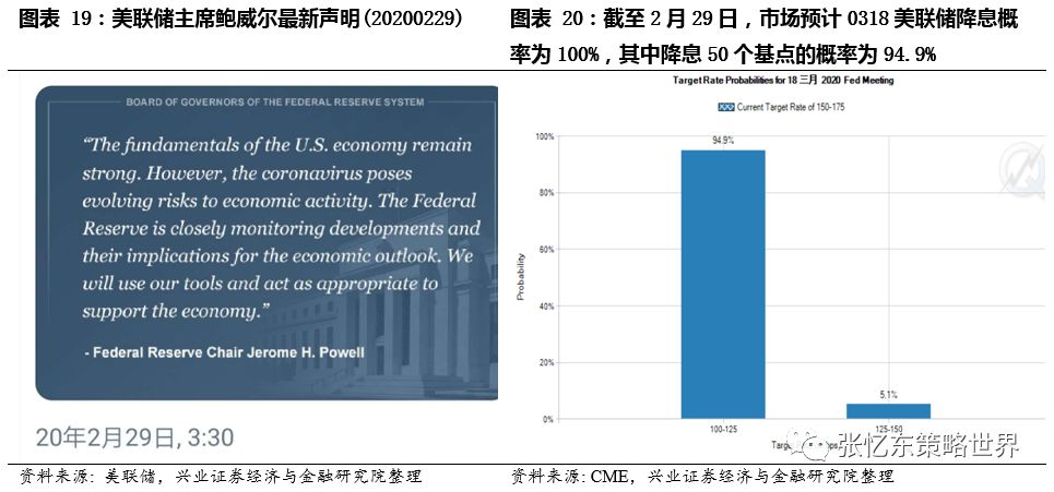 截至本周五(2月28日),美国高收益利差已经高达5.0%,和2018年年末水平接近,所以,在信用环境恶化的约束下,美联储大概率会进一步宽松,甚至在3月18日美联储议息会议之前做出提供短期流动性的宽松政策。