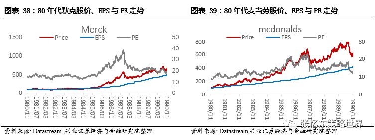 3)股灾对核心资产股价的影响,只是成长途中的一个小波折。遭遇1987年股灾,标普指数在两年后才回到股灾前的高位,但是,百事、迪士尼、默克、麦当劳、强生、沃尔玛等等代表性企业,1989年的股价远远超过了87年的顶点。