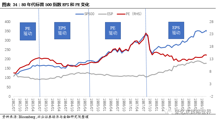1)1987年股灾:美股估值PE从23倍回落至16.84倍