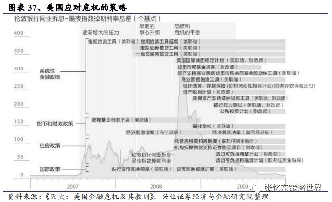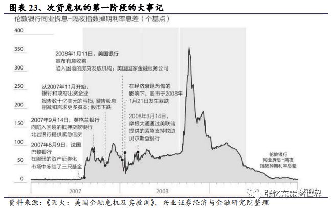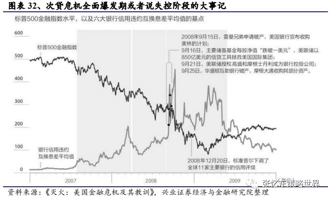 2.3、金融危机第三阶段:债务危机和经济冲击(2008年8月-10月)2008年9月开始出现对金融体系的挤兑,恐慌情绪蔓延到债市和实体经济。财政部及美联储向房利美和房地美各自注资1000亿美元,基本将两家抵押贷款巨头收为国有。
