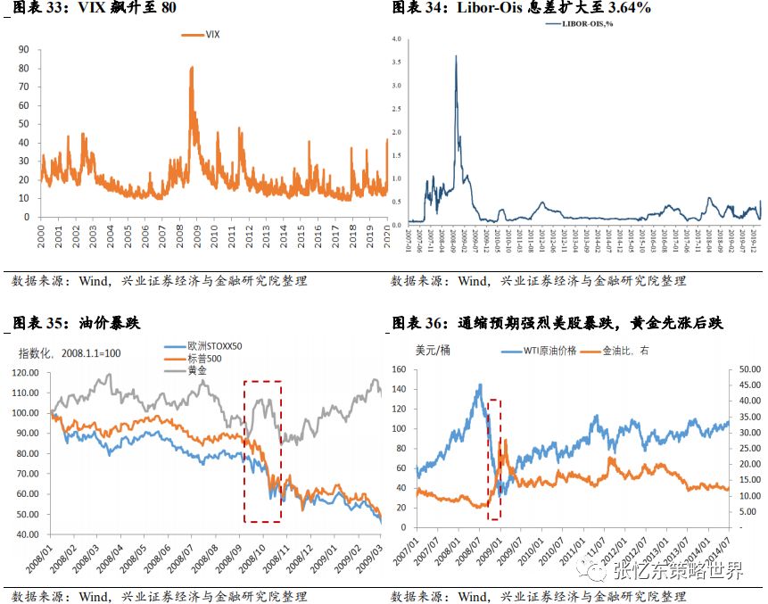 各个市场全面陷入流动性紧缩的危机,反映银行信贷压力的Libor-Ois息差扩大至3.64%,均为有数据以来的历史最高值。