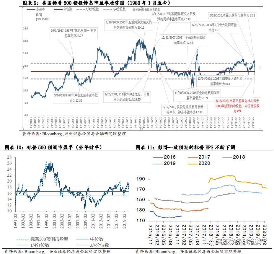 一、大号版“2018年2月踩踏”和加长版“1987年股灾”已上演,是砸出“黄金坑”?还是问题才刚开始?1、二月下旬至今我们持续提醒海外风险:“西风冷”、risk off、“倒春寒”。当前美股步入小熊市的判断已成事实,海外金融危机的迹象初步显现。此次美国股市的大号“股灾”,海外疫情超预期和原油价格战进一步引发恐慌是外部次要因素,内因是美国股市“短期估值偏高+交易拥挤、杠杠产品+基本面下行”。2、美股历史上的股灾分两种类型1)砸出“黄金坑”机会的“股灾”,1987年10月黑色星期一、2018年2月美股“踩踏”。2)短期“股灾”标志着危机升级并将冲击债务和经济,2000年股灾标志互联网泡沫泡沫、2008年金融危机。二、以史为鉴,复盘2008年次贷危机的四个阶段:第一阶段:火花涌动,次贷机构出现流动性危机,贝尔斯登计划申请破产。第二阶段:风暴喘息期,美联储的干预行为使资本市场获一段平静期。第三阶段:债务危机和经济冲击,恐慌情绪蔓延到债市和实体经济,出现对金融体系的挤兑。第四阶段:全球救火,全球主要经济体携手展开大规模货币政策刺激和财政刺激计划。三、短期海外展望:乍暖,股灾后有望回光返照式反弹,但较难持久1、面对全球“股灾”,主要经济体开始维稳,短期市场有望反弹:1)美联储解决流动性恐慌,特朗普尽力化解疫情恐慌;2)中国、欧洲等推出维稳或刺激政策。2、警惕“救火后遗症”:1)加大检测之后,美国疫情数据有飙升风险;2)美国10年国债收益率,作为全球资产定价的锚,阶段性的不稳定状态仍将延续。美联储大放水之后,已经低于1%的10年期美债收益率,未来为零甚至负利率的预期提升。3)要提防资金从新兴市场回撤到美国库券市场。历史证明,危机模式下,若欧、日情况更糟,全球资金依然会把美债作为主要的避风港。四、中期展望:海外危机初露峥嵘,欧美债务风险才刚开始1、最大的一个大雷:欧洲经济及债务风险,不可低估疫情和股灾对其冲击。1) 欧洲债台高筑,民粹主义盛行,负利率状况下只能依靠量化宽松支撑。2018年欧元区非金融企业部门杠杆率107.1%,远超过2008年。2)基于欧元区经济结构特征,疫情对欧洲经济的中期冲击严重。2018年欧元区商品和服务出口占GDP的比重为45.9%,远高于中国(19.5%)日本(18.4%)美国(12.2%)。3) 疫情对打破“QE可以搞定一切危机”幻觉,近期高收益债利差上升。后续,警惕未偿还规模达3.58万亿欧元的欧洲金融债或成欧洲债务危机导火索。2、第二个大雷:债务风险从欧洲向美国传递,警惕美国页岩油、航空等领域1) 美国当前杠杆率远超过2008年,低评级的债务规模占比大,近期高收益债利差从前几年3%-4%的低位升至6.46%,为2016年5月以来的最高值。2) 油气相关的债务规模在美国高收益债占比为10.6%,美国信用债存量中,能源业规模为8570亿美元,仅次于银行业。后续需密切关注页岩油公司CDS。3)航空产业链受疫情冲击叠加产业链资本结构的负反馈,债务风险加大。3、第三个大雷:举债进行回购股份的风险暴露:降息周期下,常见美国上市公司举债回购,若难以为继,轻则反向减持股份,重则破产清零五、投资策略:“危”中有“机”,以“长”打“短”,“长钱”买入好时机5.1中短期展望:乍暖还寒。股灾后的反弹或产生“V型反转”幻觉,但中期的海外经济风险和债务风险仍箭在弦上。美股可参考2015年A股的节奏。5.2长期展望:临危不惧,以史为鉴,不论是1987年股灾还是2008年危机的恐慌阶段,都是长期逢低买入最有竞争力的优质公司的好时机。5.3投资建议:危中有机,建议“长钱”立足长期(1年以上)逢低做多中国:首先,建议长钱积极布局安全边际高的中国核心资产,等待全球复苏时收获:其次,立足长期,一年以上,战略性看多港股,便宜是硬道理;第三,长期来看,科技依然是未来三、五年的主旋律,耐心淘金中国科技核心资产。风险提示:全球经济增速下行;中、美货币政策宽松不达预期;大国博弈风险一、大号版“2018年2月踩踏”和加长版“1987年股灾”已上演,是砸出“黄金坑”?还是问题才刚开始?1.1、回顾:2月下旬至今,我们持续提醒海外风险——“西风冷”、risk off、“倒春寒”20200216《平衡市下的结构性行情》:(1)下调了对2020年中国权益资产(A股、港股)大盘指数的判断——从2012年11月12日年度策略《全球资产荒和中国核心资产牛市新主角》判断的指数牛市(即年涨幅 20%以上),下调为平衡市(年涨幅 10%左右),其中,1月中旬的高点到年底的大盘指数可能是弱平衡市(涨幅正或负 10%以内)。(2)除非发生“全球股市大熊市”的小概率事件,否则,A 股和港股不可能出现系统性熊市。 20200223《西风冷、东风暖,顺风而行》:预警了海外风险,明确给出海外risk off将主导的观点:“西风冷,海外避险情绪抬升,海外资产短期进入risk off。后续海外基本面情况承压,欧美市场估值处于高位,避险情绪的影响将短期居于主导”。 20200308《短期“倒春寒”,中期“避风港”》展望海外市场:1)未来数周欧美股市仍将震荡筑底、频现暴涨暴跌的不稳定状态,基本面预期受疫情压制,偏高的估值将调整。2)中期,基于美联储果断带领全球“大放水”、全球加强疫情防控的合作,我们判断2020年美股大概率是小熊市(20%左右跌幅)或震荡市(10%左右的涨跌幅),而跌幅超过30%、40%的大熊市仍是小概率,美股引发全球股市大熊市也是小概率。1.2、美股步入小熊市的判