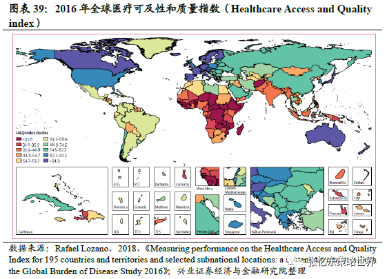 首先,越来越多的亚非拉新兴市场国家的新增确诊案例开始上升。截至4月18日;新兴市场国家墨西哥和巴西等,新增确诊趋势开始迅速上升,拐点仍未出现。其次,亚非拉新兴市场国家在检测方面的能力较为欠缺,可能存在大量未确诊案例。第三,新兴市场国家医疗资源相较于发达国家更为脆弱。根据柳叶刀杂志所载文章[1],2016年全球医疗可及性和质量指数地图显示,印度、孟加拉国、尼日利亚等所在的南亚、东南亚及非洲地区医疗可及性和质量指数较低。
