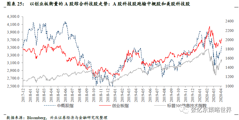 2.4、中国资产补涨行情,将得益于美国科技股行情的映射。钱多、短期经济糟糕、有梦想的地方容易起泡沫,后续反弹,我们首推中国优质科技成长股。